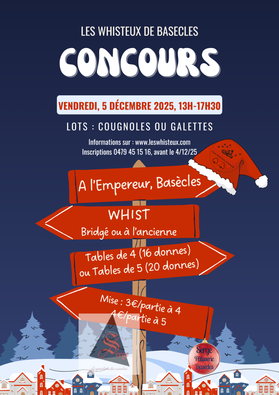 Pendant l'année également, plusieurs rencontres de Whist sont organisées à des occasions bien précises. En 2025, à l'approche des fêtes de fin d'année par exemple, c'était l'occasion à tous de se rencontrer, membre du club ou pas, pour s'amuser à jouer simplement avec des cougnolles et des gauffrettes comme lots !