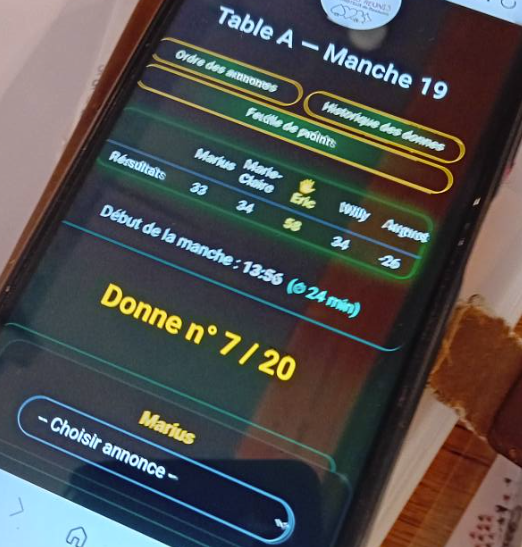 Celui-ci se joue en 20 manches de 4 tours de table.