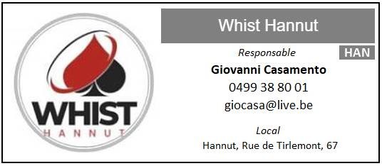 1. "Whist Hannut" - 3558 pts (moy. 44,48 pts)